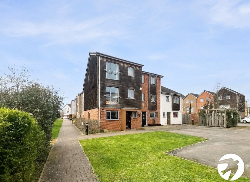 Situated in the highly sought-after Bridge community in Dartford, this modern four-bedroom end-of-terrace home is arranged over three well-designed floors and offers spacious, contemporary living throughout. Ideally located within walking distance of very good local schools and surrounded by a welcoming neighbourhood atmosphere, the property is perfect for families seeking both comfort and convenience. The ground floor comprises a convenient W/C, a modern fitted kitchen complete with appliances, and a bright and spacious lounge/diner, providing an ideal setting for both everyday living and entertaining. On the first floor you will find three well-proportioned bedrooms, including two generous double rooms and one single bedroom, along with a modern three-piece family bathroom suite. Occupying the entire top floor is an impressive master bedroom suite, featuring built-in storage, a stylish en-suite shower room, and a separate walk-in wardrobe, offering excellent space and practicality. Externally, the property benefits from an easy-to-maintain rear garden, complete with an attractive pergola, creating a wonderful space for relaxing or entertaining guests. There is also the added advantage of off-street parking. Offered unfurnished and available to move in towards the end of April, this fantastic home combines modern living with a strong sense of community in one of Dartford’s most popular residential areas. Council Tax Band: E (Dartford) Deposit Required: £2,884 Affordability Required: £75,000 -