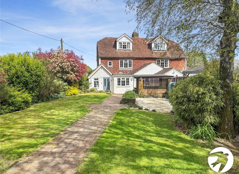 Tucked away in an idyllic rural setting, this charming three-bedroom semi-detached cottage offers a rare opportunity to enjoy peaceful countryside living while remaining within easy reach of Maidstone. Dating back to 1754, the property is rich in character and history, with beautiful exposed beams and period features that blend seamlessly with modern comforts. Approached via a welcoming porch entrance, the ground floor comprises of two well-proportioned reception rooms, ideal for both relaxing and entertaining, alongside a spacious kitchen offering ample room for dining with white goods included. A convenient downstairs WC completes the layout. To the first floor, the property offers two generous double bedrooms, a versatile office space perfect for home working, and a family bathroom fitted with a shower. The second floor is dedicated to an impressive master double bedroom, creating a private and tranquil retreat. Recently updated with brand new fitted carpets throughout, the home is presented in excellent condition while retaining it's timeless charm. Externally, the cottage is set within a peaceful, good-sized garden featuring a patio area and lawn, all overlooking breathtaking, uninterrupted countryside views. Every window frames a picturesque outlook, enhancing the sense of calm and seclusion. Despite it's wonderfully remote feel, the property remains conveniently located just a short drive from Maidstone, providing access to local amenities and transport links. Additionally off-road parking is available for multiple vehicles. This unique home perfectly balances historic character, modern comfort, and serene rural living. Early viewing is highly recommended to fully appreciate the charm and setting of this lovely home.