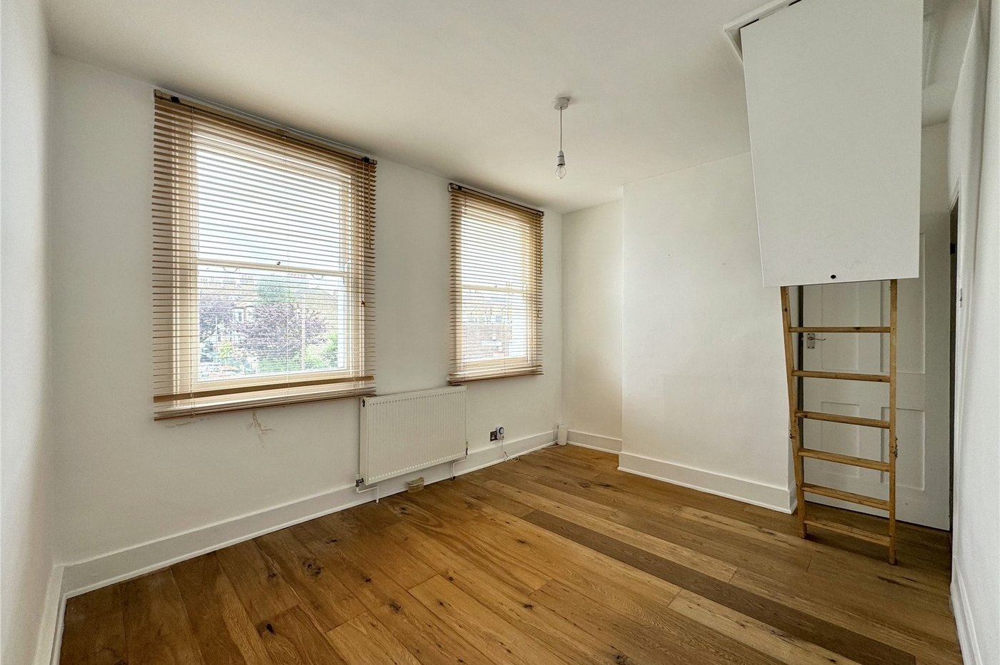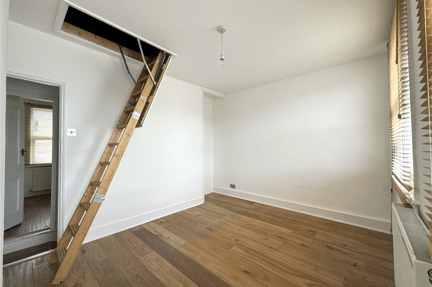 Wood laminate flooring, access to boarded loft via fitted ladder.