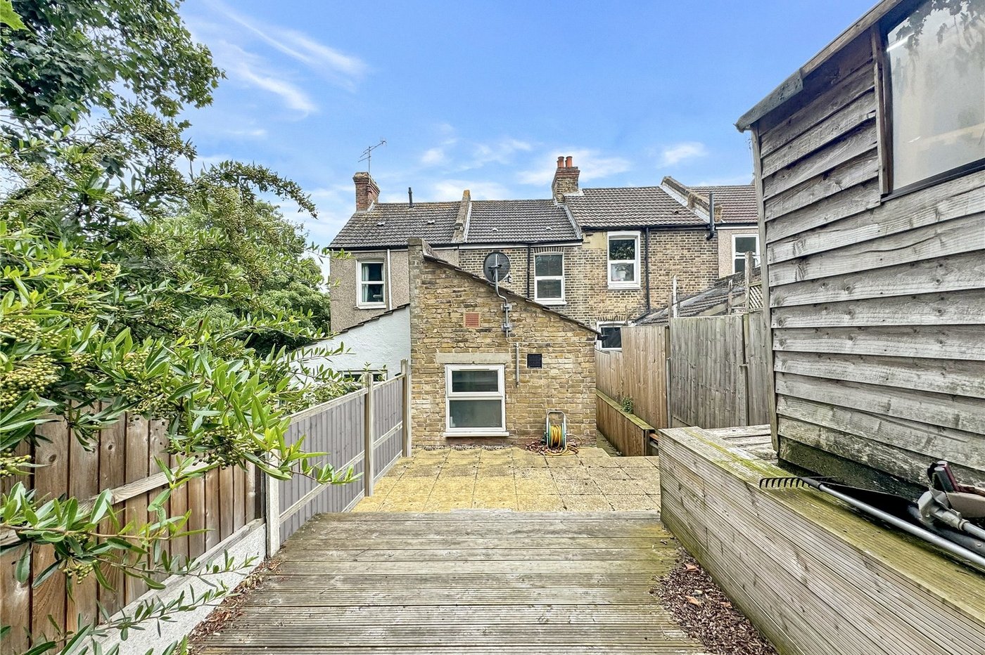 Decked and slate area.