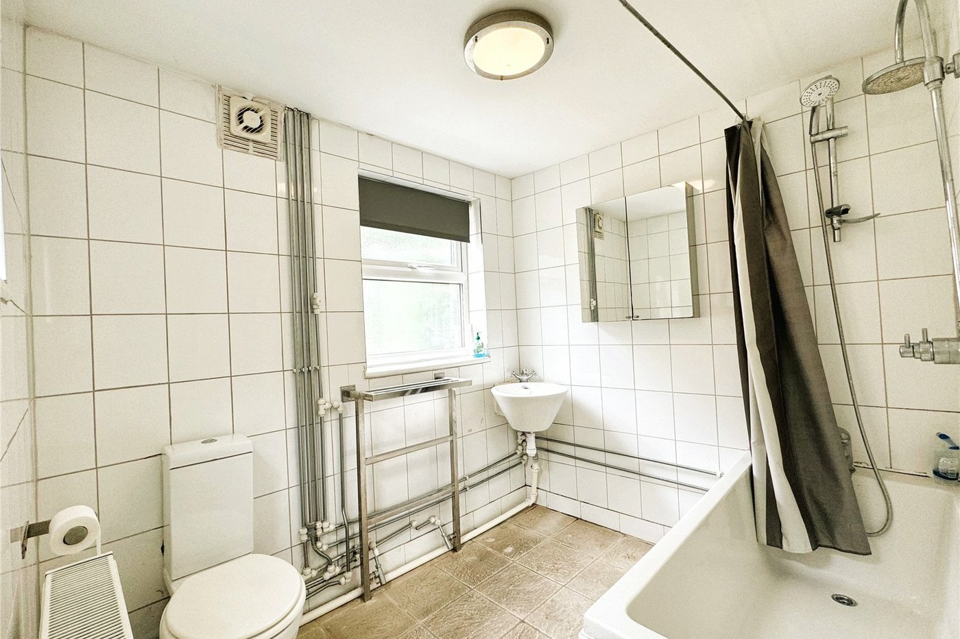 (Ground Floor) Fitted with a three piece white suite comprising of a panelled bath, wash hand basin and WC, tiled flooring.