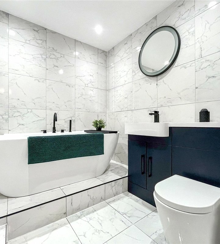 Bathroom 2.46m x 2.08mTiled flooring, low level w/c, wall mounted towel rail, fully tiled walls, double glazed window to rear, basin with mixer tap.