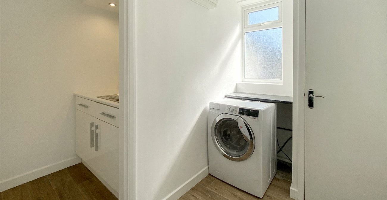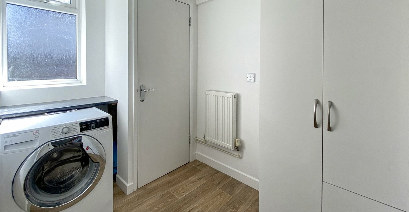 Utility AreaDouble glazed window to side, units with built in stainless steel sink unit with drainer and mixer tap, plumbed for washing machine, cupboard housing boiler, radiator, laminate flooring.