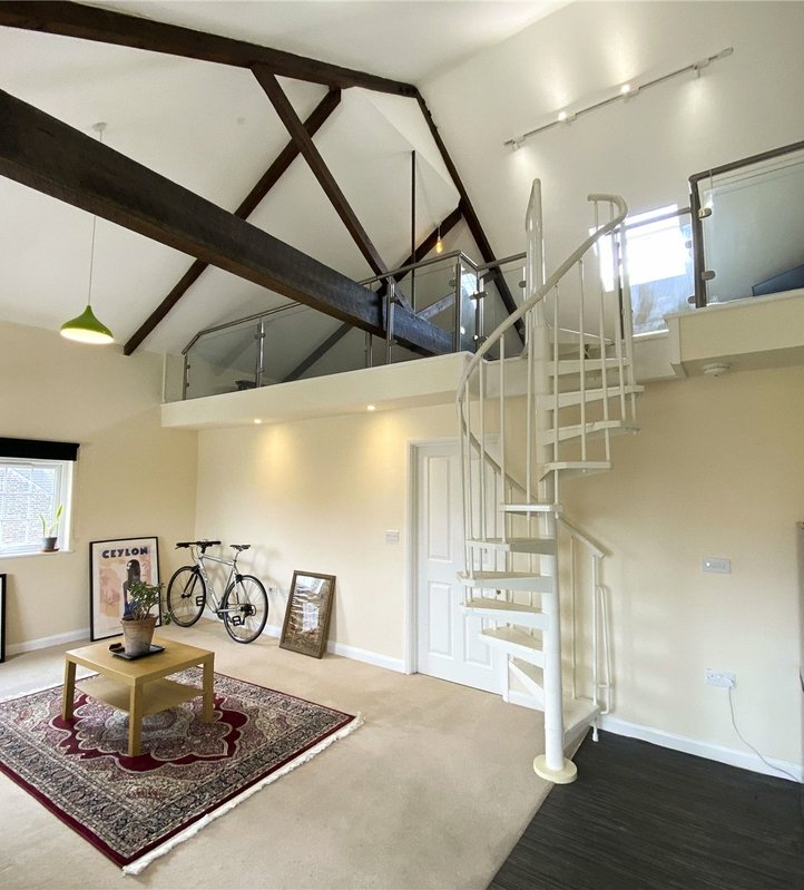 Adjoining the living space is a contemporary fitted kitchen, finished in a clean, modern style with a good range of wall and base units and generous worktop space. The kitchen is offered without fitted appliances, allowing buyers the flexibility to choose and install appliances to suit their own preferences and lifestyle.