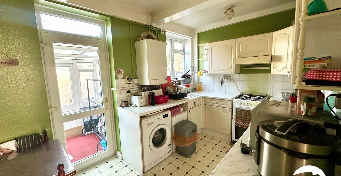 Kitchen: 3.95m x 2.37mDouble glazed window to rear, doors to back, range of wall and base units, integrated cooker, oven and extractor fan, stainless steel sink with mixer tap, plumbed for washing machine, integrated fridge freezer, vinyl floor, access to WC and under stairs storage cupboard.