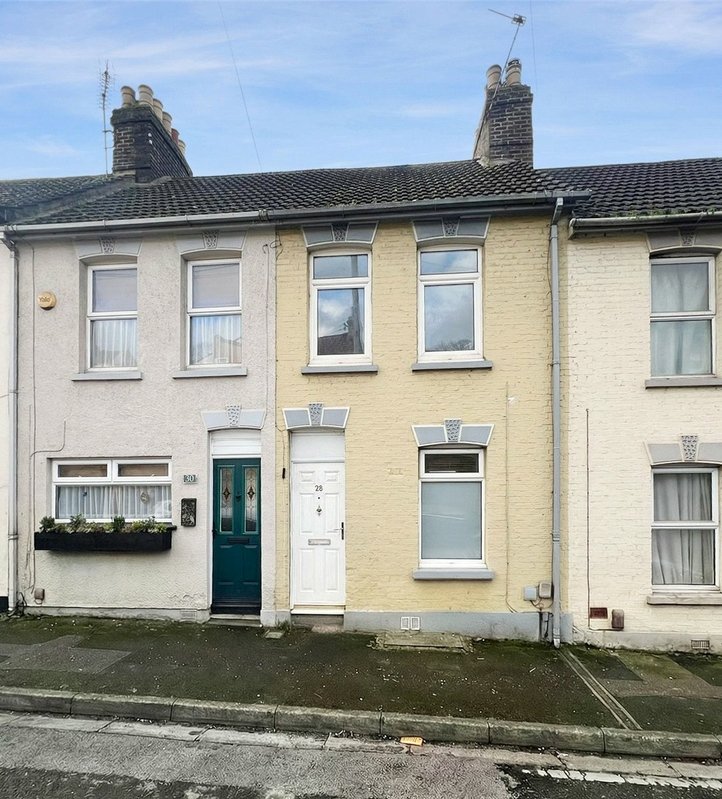 Situated on Beacon Road in Chatham, this three-bedroom end-of-terrace property offers a straightforward opportunity for buyers looking to take on a full refurbishment project.
