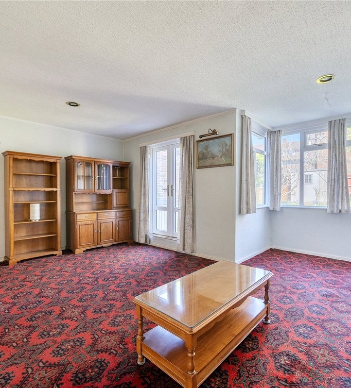 Entrance Hall Living RoomDouble glazed window to front, original open fireplace, fitted shelves, carpet