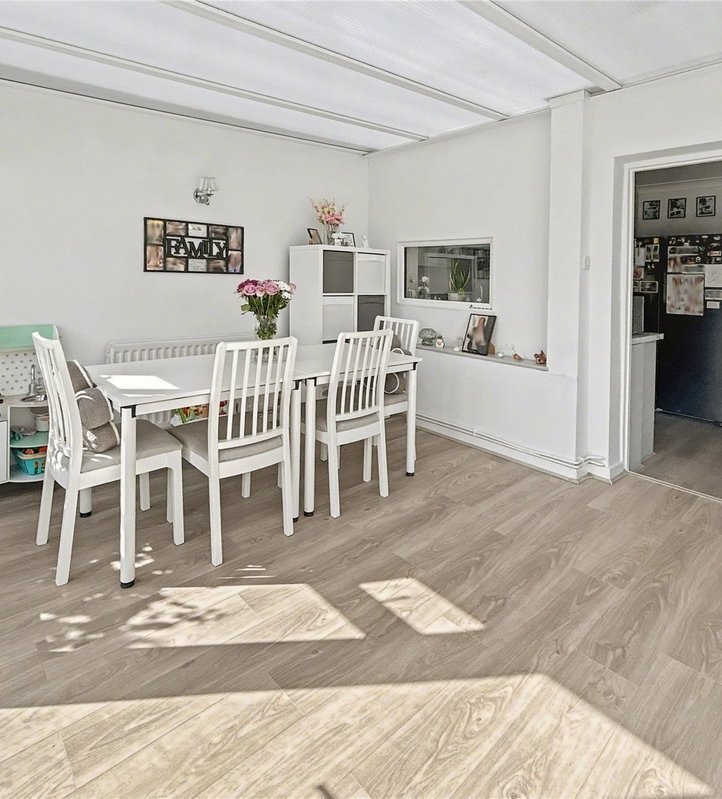 Lounge/Diner: 6.43m x 3.76mDouble glazed bay window to front, shutter style blinds double glazed French doors to rear and wood flooring. Opening to kitchen.