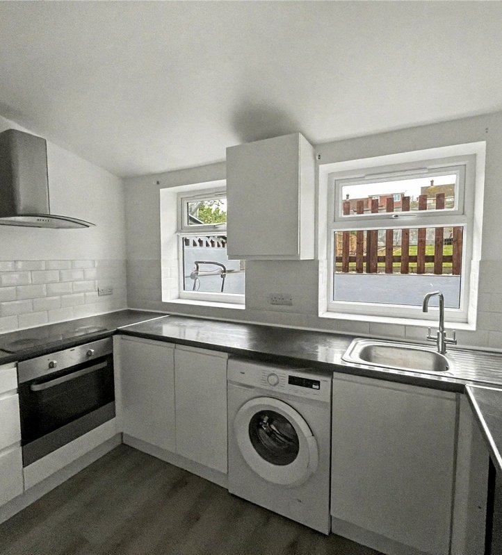 Kitchen/Diner 4.8m x 2.9mDouble glazed window & door to rear. Range of wall and base units with quartz worktops over. Fitted oven and hob with extractor fan over. Integrated fridge/freezer. Amtico floor.