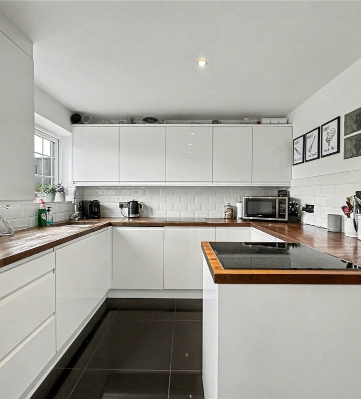 Kitchen 4.45m x 2.6mDouble glazed patio door and window to rear. Range of wall and base units with worksurface over. Fitted oven with hob. Space for appliances. Wall mounted boiler. Tiled flooring.