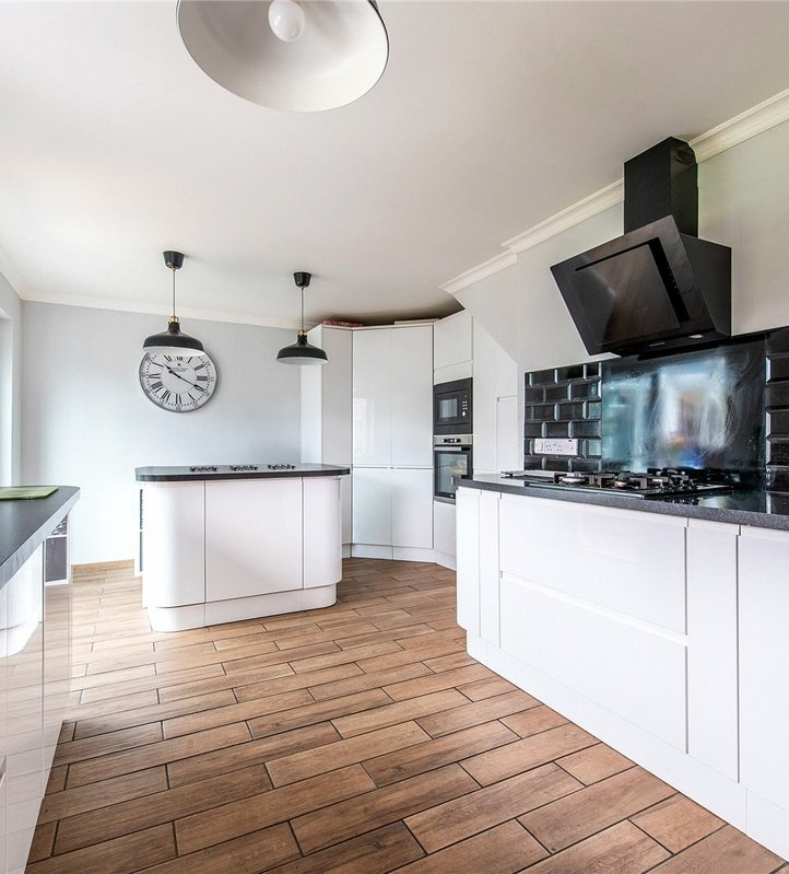 Kitchen 4.3m x 2.95mLaminate flooring. Wall to base units with roll top work surface over. Intergrated ovens x two. Hob with extractor fan. Intergrated fridge freezer, washing machine & dishwasher. Wall mounted radiator. Sink drainer with integrated boiler water tap. Double glazed window to front.