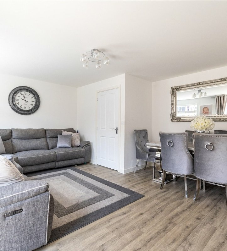 The ground floor begins with an inviting entrance hall, setting the tone for the rest of the property with its bright and tidy presentation. To the front is a spacious lounge, ideal for relaxing and family time, with room for a range of furnishings and a layout that lends itself well to cosy evenings or entertaining guests. To the rear, you’ll find a generous kitchen/diner, offering plenty of storage and worktop space along with room for a dining table. Patio doors open directly to the rear garden, creating a seamless indoor-outdoor flow and allowing lots of natural light into the space. Just outside the back door is access to a workshop and storage area, ideal for tools, bikes or hobbies – a practical addition that many buyers will appreciate.