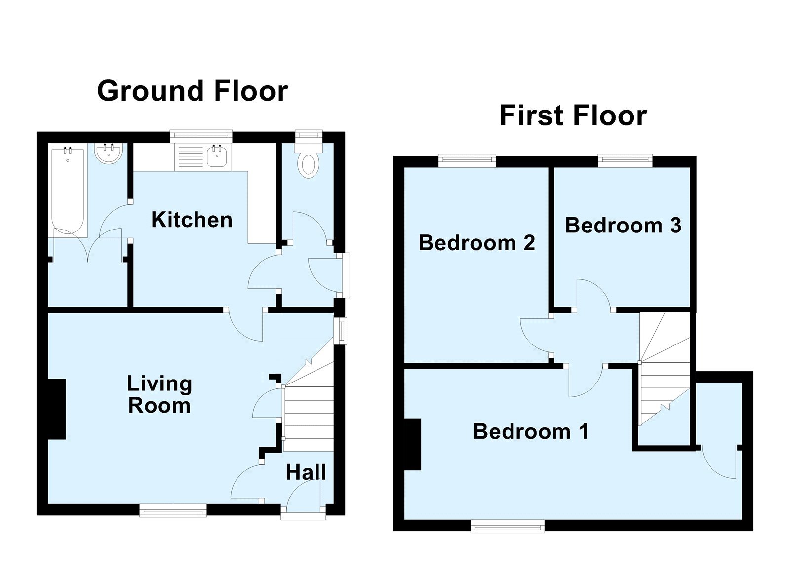 Bathroom:Fitted with a white two piece suite comprising a panelled bath and pedestal wash hand basin. Part tiled walls and vinyl flooring.