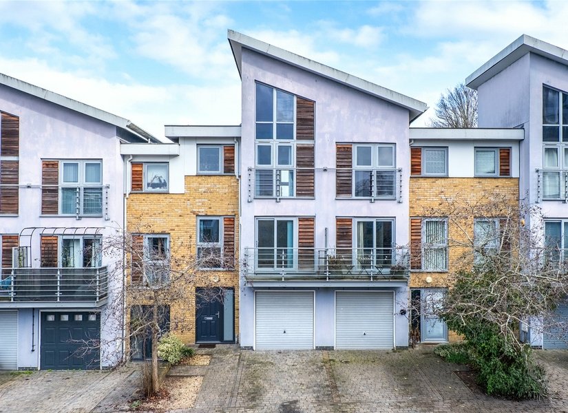 Guide Price £400,000-£425,000 This spacious five-bedroom modern townhouse arranged over three floors offers an ideal family home with no onward chain. The property features four very generous double bedrooms plus a versatile fifth bedroom, perfect for use as a home office or guest room. The master bedroom benefits from an ensuite and also has access to a vast full height loft space. In addition, there are two further family bathrooms and a convenient downstairs WC. The ground floor boasts a bright open-plan kitchen/diner with direct access to an extensive private rear garden - a great space for children or entertaining. On the first floor there is a well-proportioned living room with a west facing balcony ideal for evening relaxation. The house also enjoys open views in a tranquil riverside setting. Additional benefits include a large integral garage and driveway parking for two vehicles. Possessing excellent public transport links within easy walking distance, alongside outstanding schools and local amenities, this is a very desirable family location. A rare opportunity to acquire a substantial, well-appointed contemporary townhouse in a prime spot, viewings highly recommended. -