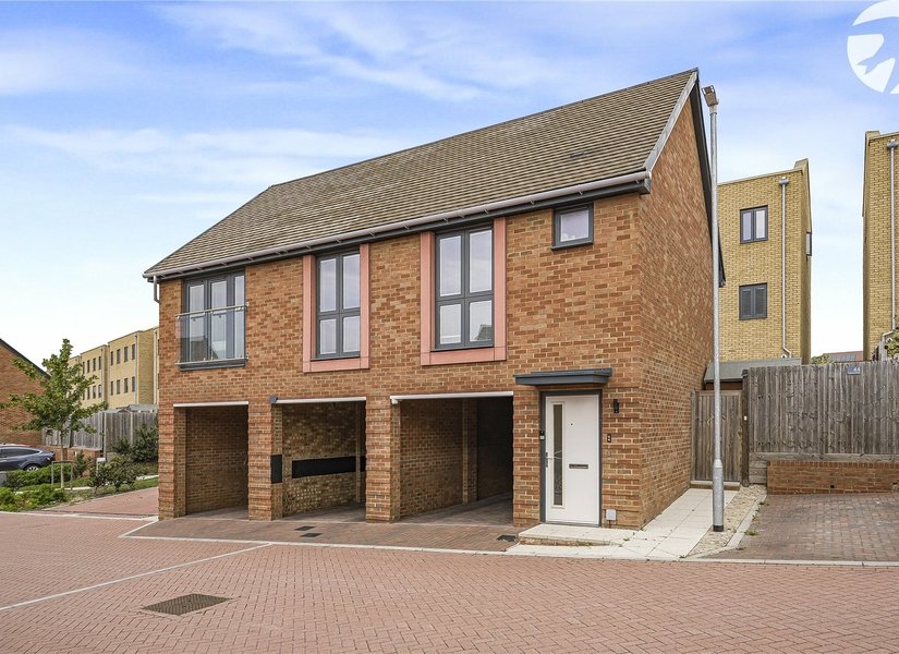 Located on the sought-after Castle Hill development in Ebbsfleet, this beautifully presented 2-bedroom, 2-bathroom coach house offers a rare blend of apartment convenience and detached house like privacy. The property has parking directly below and additional ground floor storage – perfect for bikes, tools, or bulky items. This home boasts its own private entrance, new carpets throughout, air conditioning for year-round comfort, and a charming Juliette balcony that makes the most of its bright, south-facing aspect. Ideally located, Castle Hill offers excellent local amenities including parks, schools, and a community centre, with nearby shops and cafes adding to the village feel. Ebbsfleet International Station is just minutes away, providing high-speed links to London St Pancras in under 20 minutes, while the A2 and M25 offer easy road access. An ideal blend of comfort, convenience, and style. -