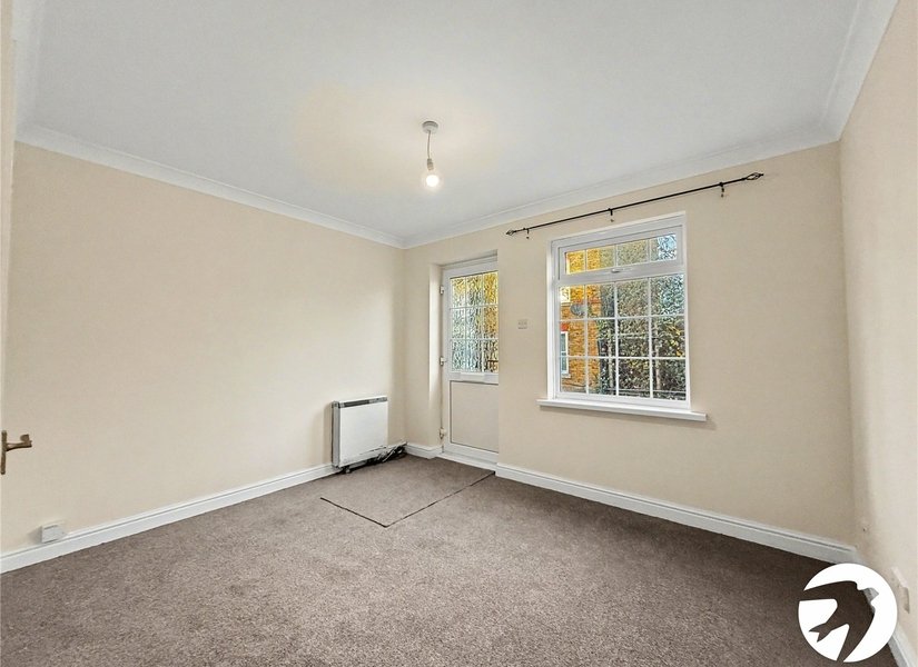 This well-positioned one-bedroom first floor maisonette is located within easy walking distance of Sittingbourne town centre, offering a convenient lifestyle in a residential setting designed exclusively for those over 55. The property is available with no onward chain. Set back from the main road by a small courtyard, the home benefits from a private access road leading to communal parking at the rear. The front door opens to a small vestibule with stairs rising to the accommodation above. There is scope for an electric stair lift to be installed if required, providing additional accessibility. Inside, the landing connects to a bathroom at the front of the property and a well-sized double bedroom overlooking the rear courtyard. The fitted kitchen includes a selection of appliances and has space for dining, while the lounge is bright and generously proportioned, enjoying dual aspect windows to the side and rear. Viewing is recommended to appreciate the setting and accommodation on offer. -