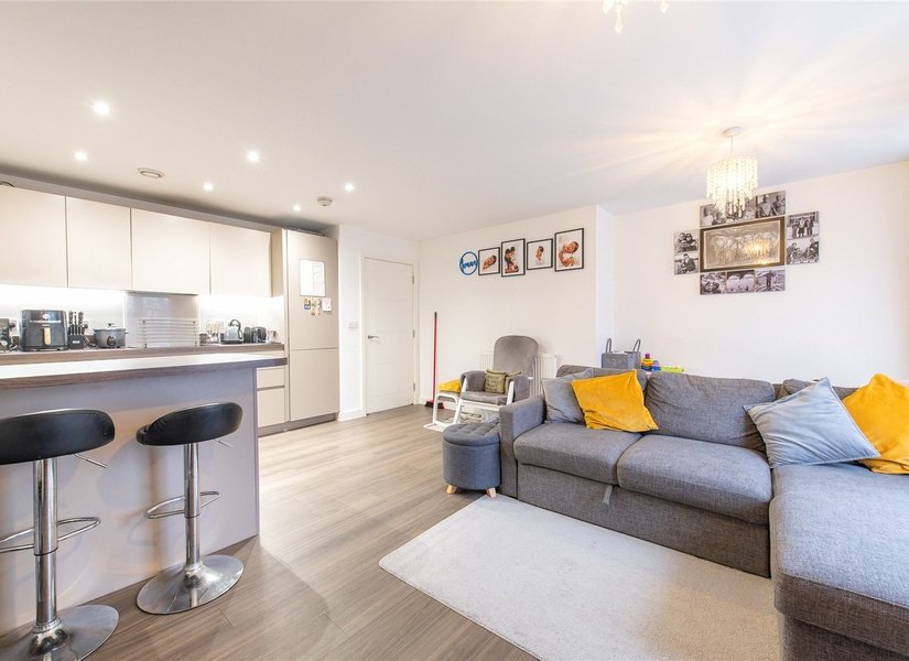 A beautifully presented one-bedroom flat situated in the sought-after Bonham Way development in Northfleet, offering a modern and spacious layout that’s ideal for first-time buyers, downsizers or investors alike. Set on the first floor, this lovely home has been well maintained throughout and provides a bright, open-plan living area that perfectly combines lounge, dining and kitchen spaces. The open-plan living space enjoys plenty of natural light from its large windows and offers flexibility for both relaxing and entertaining. The kitchen area is neatly fitted with modern units, integrated oven and hob, and ample worktop space — a great setup for day-to-day living. A hallway leads through to the double bedroom, which is a generous size and provides room for freestanding furniture. The bathroom is stylishly appointed with a white suite including a bath with overhead shower, basin, and WC. The flat also benefits from a well-planned inner hallway with built-in storage space, enhancing the sense of practicality throughout. Externally, residents enjoy communal grounds and allocated parking, making day-to-day living both easy and convenient. Bonham Way is a popular and well-kept development positioned within easy reach of local shops, schools and amenities. Northfleet and Ebbsfleet International stations are nearby, offering high-speed links to London and beyond, while the A2/M25 road network is easily accessible for those who commute by car. Bluewater Shopping Centre is also just a short drive away, providing a vast range of retail, dining and leisure options. This is an excellent opportunity to purchase a ready-to-move-into apartment in a desirable location, combining modern comfort with superb transport connections and a friendly community setting. -