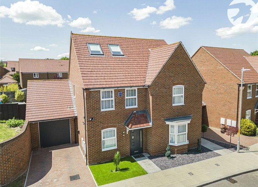 ** Guide Price: £780,000-£825,000** Nestled in a quiet and picturesque part of the ever popular Castle Hill development of Ebbsfleet Garden City is this luxurious modern detached house boasting sophisticated design and spacious living areas. With a private electric gated entrance and 4 double bedrooms, this property offers a peaceful retreat from the hustle and bustle of city life. The well-maintained interior is complemented by a beautiful garden to rear and, to the front, a balcony off of the master bedroom with scenic views over the lake providing ample space for outdoor relaxation and entertaining. The property also features a garage for convenient storage (currently used as a home gym) and off-street parking with EV charging point. Ideal for families or those seeking a tranquil setting, this home offers a perfect blend of comfort and style. Don't miss the opportunity to make this sophisticated and scenic property your own. Contact us today to schedule a viewing.