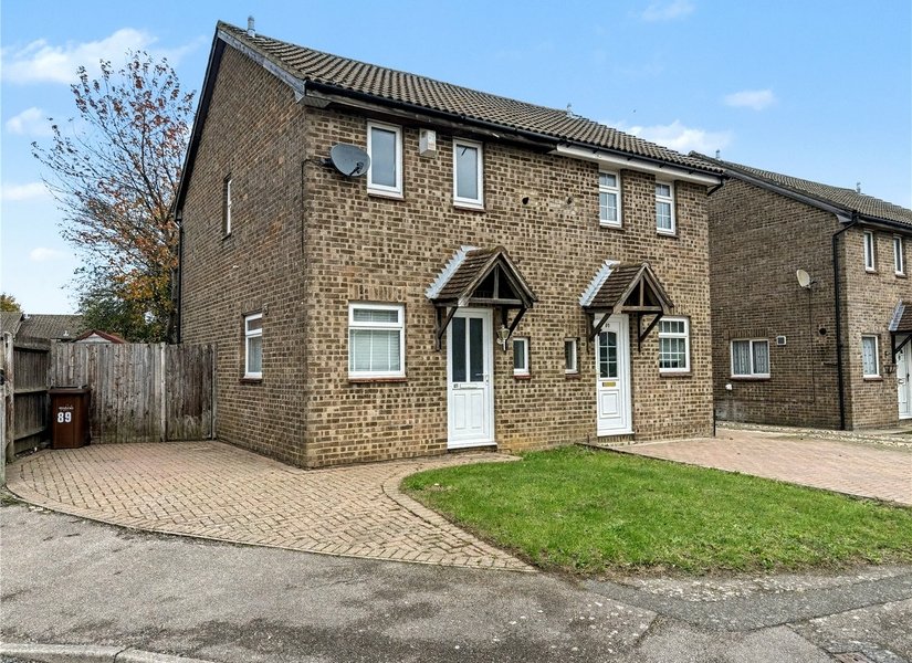 This two bedroom semi detached home is well presented throughout and is situated in a convenient residential location. The property offers a private driveway to the front and additional parking to the rear, making it a practical choice for first-time buyers or those looking to downsize. The ground floor includes an entrance hall, a fitted kitchen at the front with modern units and an integrated oven and hob, and a good sized lounge to the rear with sliding doors opening onto the garden. The lounge is bright and neutral, providing a comfortable living space with easy access to the outdoors. Upstairs there are two bedrooms, including a main double bedroom and a second room with built-in storage. The bathroom is clean and well kept, fitted with a bath and WC. Outside, the property has a driveway providing off-road parking at the front and further secure parking at the back of the garden, an enclosed rear garden with a lawn and patio area, and further parking to the rear. Being semi detached, it also benefits from side access and a slightly larger plot. This is a tidy and low maintenance property in good condition, ready for immediate occupation and conveniently located close to local shops, schools and transport links
