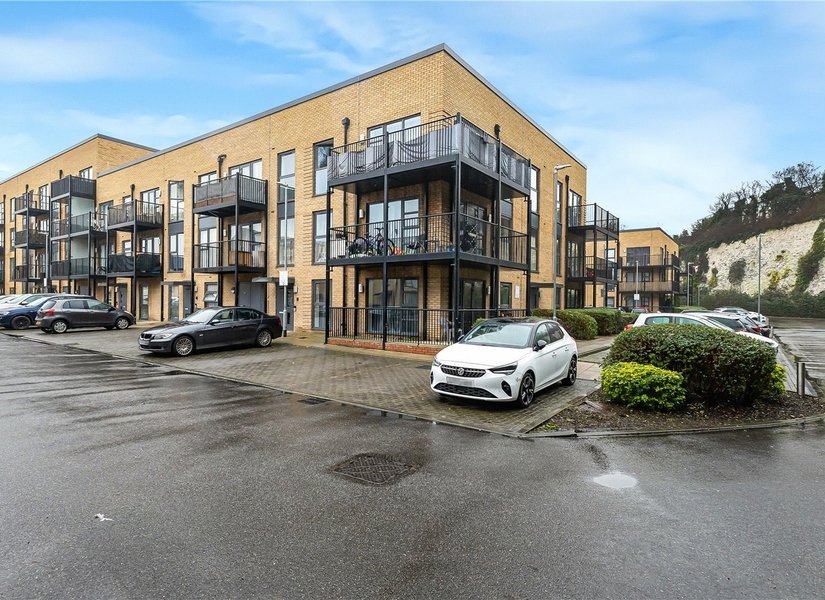 Located on the top floor of the well-regarded Nave Square within the Cable Wharf development, this impressive two-bedroom, two-bathroom apartment is presented in very good condition throughout and offers spacious, modern living in a highly convenient Gravesend location. The apartment is accessed via a well-maintained communal entrance with stairs leading to the top floor, where the property enjoys a pleasant sense of privacy and elevated outlook. Upon entering, a welcoming hallway provides access to all accommodation and includes useful storage, helping keep the living spaces clutter-free. The main living area is a generous open-plan lounge/dining space, designed to suit modern lifestyles. This room offers ample space for both comfortable seating and a dining table, making it ideal for everyday living as well as entertaining. Large windows allow plenty of natural light to flood the room, enhancing the bright and airy feel, while direct access leads out to the private balcony—an excellent spot to enjoy a morning coffee or unwind at the end of the day. Adjoining the living space is a contemporary fitted kitchen, finished in a clean, modern style with a good range of wall and base units and generous worktop space. The kitchen is offered without fitted appliances, allowing buyers the flexibility to choose and install appliances to suit their own preferences and lifestyle. The apartment boasts two genuine double bedrooms, both well proportioned and tastefully presented. The principal bedroom benefits from its own en suite shower room, providing a private and practical addition that is ideal for modern living. The second bedroom is equally well-sized and is served by the main bathroom, which is finished to a modern standard and includes a full suite. Externally, the property further benefits from an allocated car parking space, adding valuable convenience in this popular development. The overall condition, layout and location make this an excellent option for a wide range of buyers, including professionals, downsizers or those seeking a smart, low-maintenance home. -