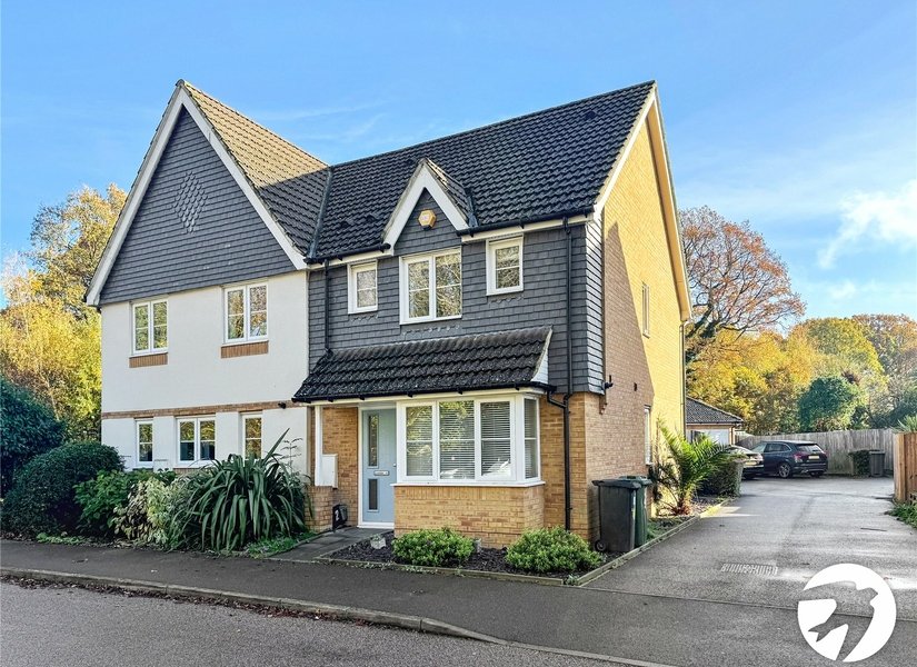 Discover this impeccably presented three-bedroom semi-detached family home, thoughtfully renovated throughout. No forward chain means a seamless move awaits. Step inside to a superb, modern refitted kitchen designed for effortless entertaining, complemented by a convenient downstairs W/C. To the rear, the reception room offers a light-filled haven with a striking new media wall. Upstairs, the master bedroom boasts a brand new private en-suite, while the other two bedrooms share a stylish new family bathroom. Outside, a low-maintenance rear garden beckons for summer relaxation, with garage en bloc, allocated parking, and ample visitor spaces ensuring practicality. Nestled in a sought-after development, it's just a short stroll to local shops and amenities, with idyllic countryside views close at hand. -